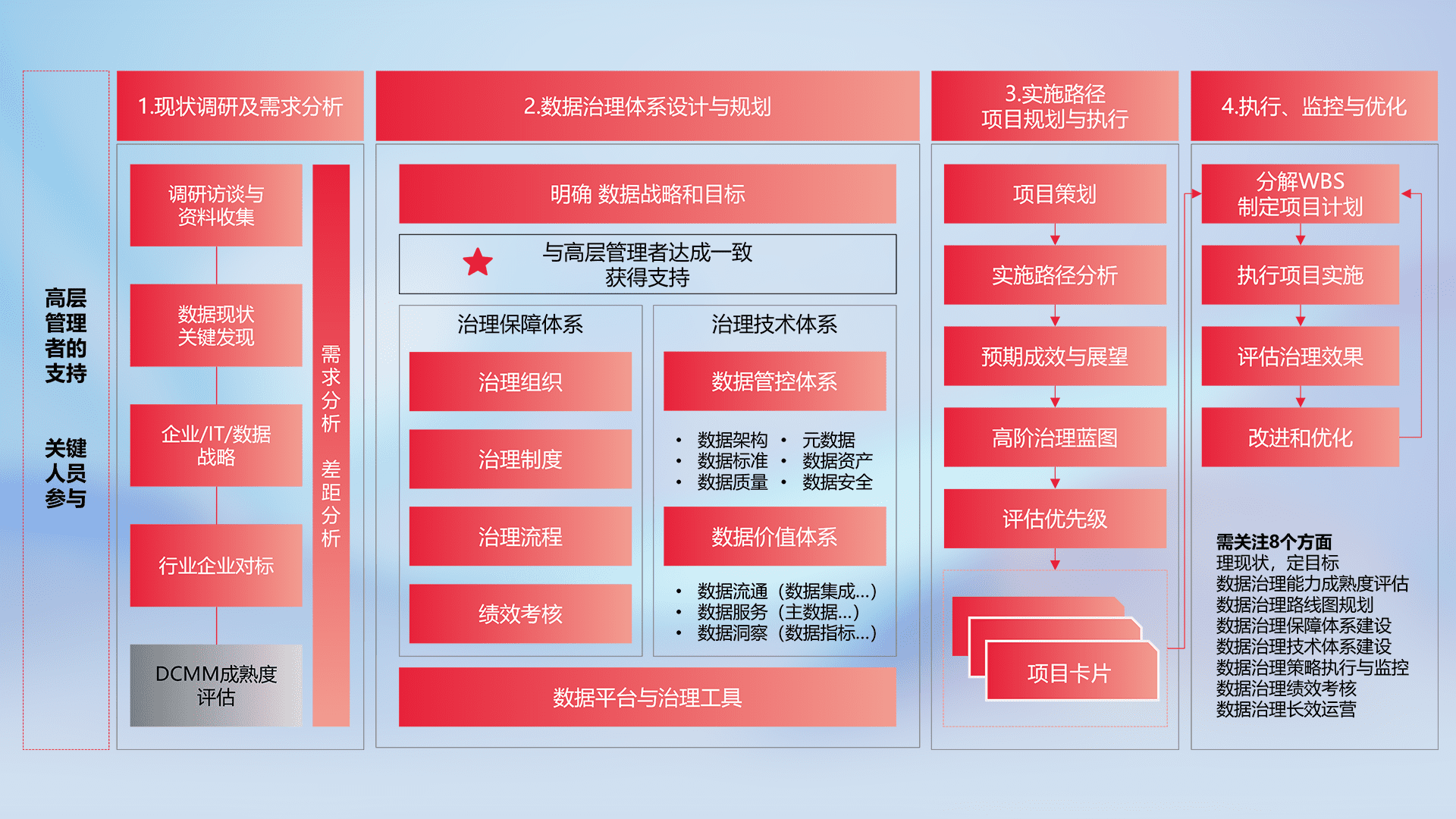 制定并执行统一的数据标准,,规范数据定义和格式,,消除冗余和不一致性,,,实现跨部门和跨系统的数据一致性,,,为企业提供标准化的数据基础。。